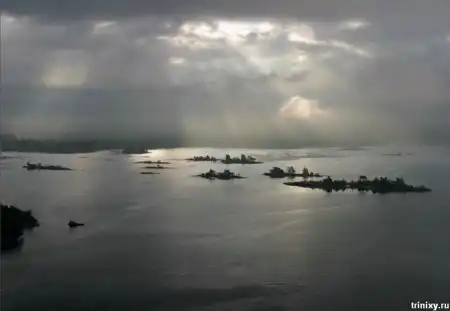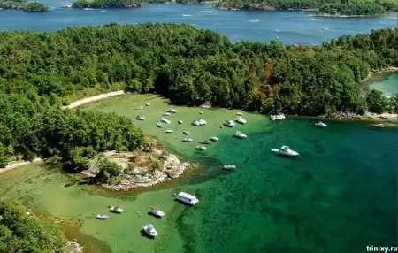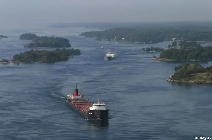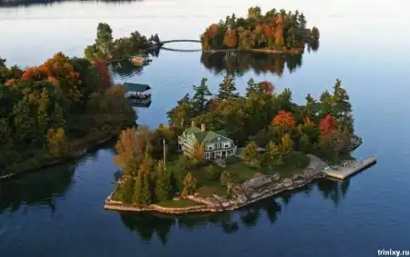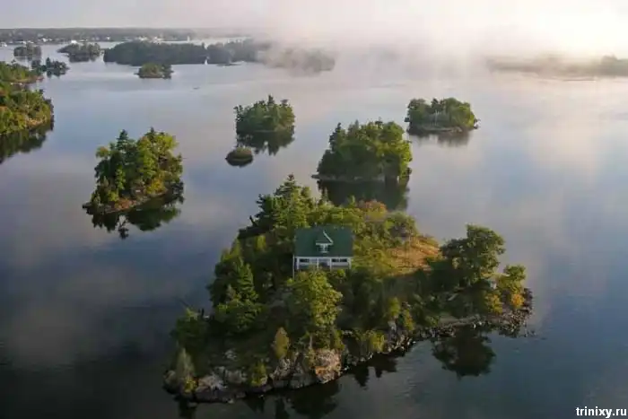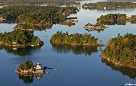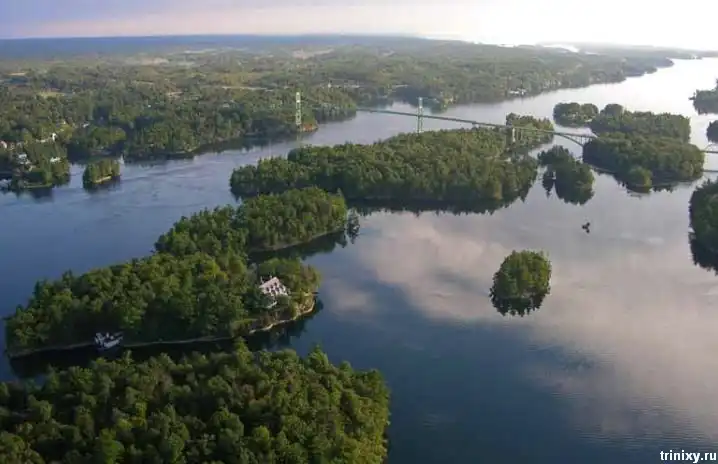 Эти маленькие острова находятся на реке Св. Лаврентия на границе США и Канады. Всего их 1865 штук. 2/3 канадские, остальные принадлежат США.