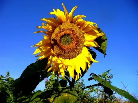 Очень понравился подсолнух на фоне ярко- синего неба.