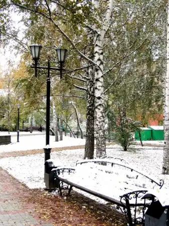 Разве не прекрасно, что в нашем городе первый снег выпадает в то время, когда еще цветут цветы и желтые листья падают с деревьев?
