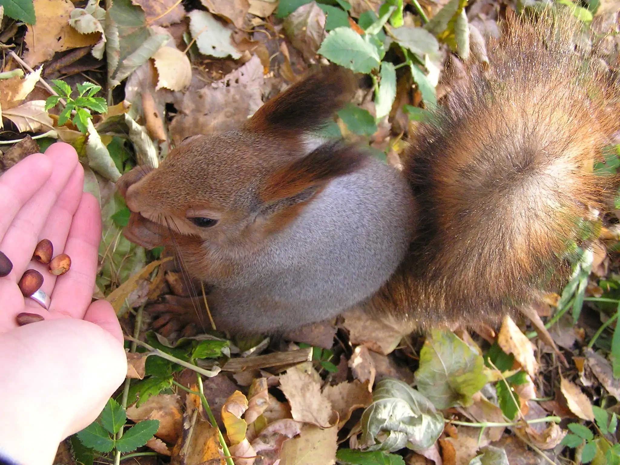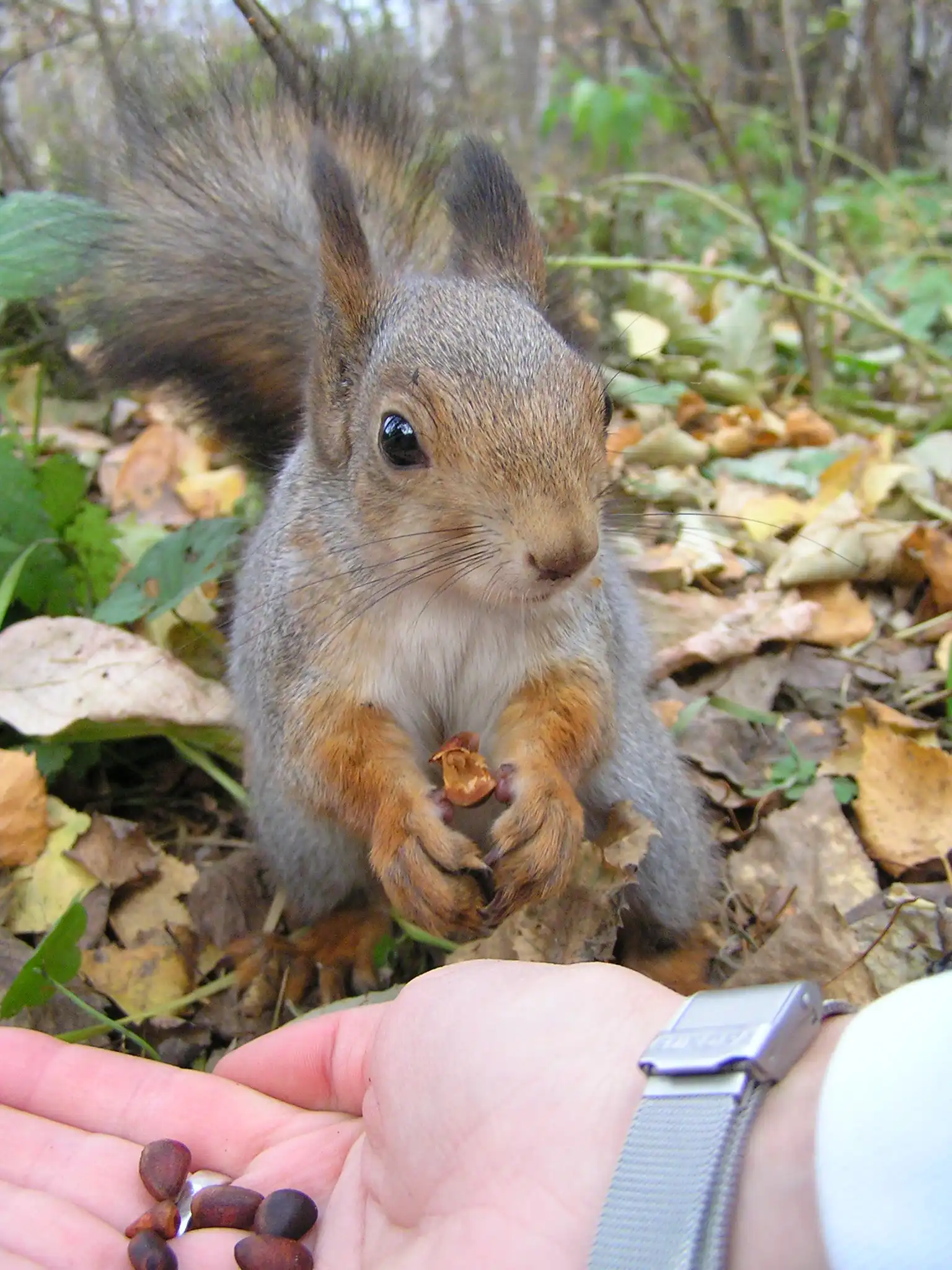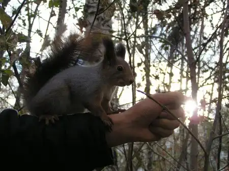 БЕЛКИ!!! Совершенно не боятся людей... наглые и прожорливые существа, но невероятно милые. За всю "фотосессию" мы скормили им 2 стакана орехов и пол яблока...