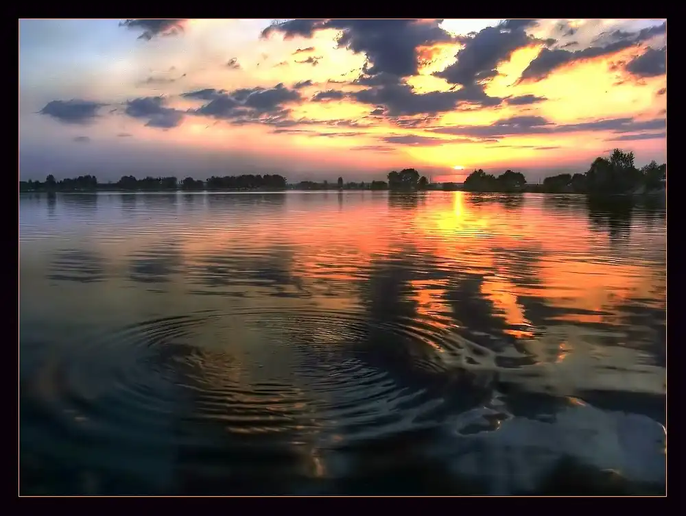 на закате вода красивая,токо кто там мог следы оставить?