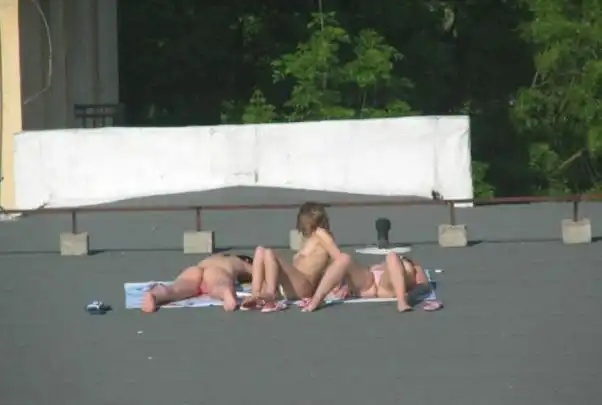 Нашли где загорать,на крыше дома своего