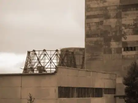 это мелькомбинат( проспект Мира 2) а через дорогу от него ТЭЦ Южно-Сахалинская. Её трубы.