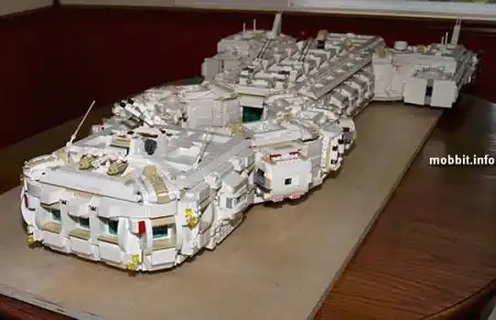Этот космический корабль под названием Pathfinder считается одной из самых больших структур, сделанных из конструктора Lego. Впечатляет Pathfinder не только размерами и внешней реалистичностью, но и тем, что внутри он тоже полностью продуман и имеет контрольный пункт, лабораторию, жилые помещения, кухню, ванную комнату, стыковочные станции, к тому же на борту присутствует 17 лего-человечков экипажа :) К сожалению, нет информации о том, сколько деталек конструктора, а также времени ушло на создание этого корабля, но и так очевидно, что и того, и другого - очень и очень много :) Галерея фотографий далее.
