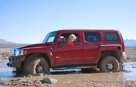 Хамер по проходимости полная фигня. Он по скольской грязи вообще не едит из-за веса. А темболие на нём резина шоссейка.