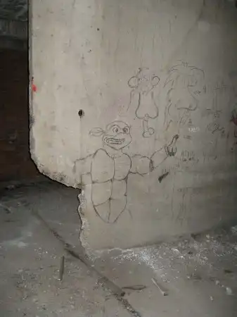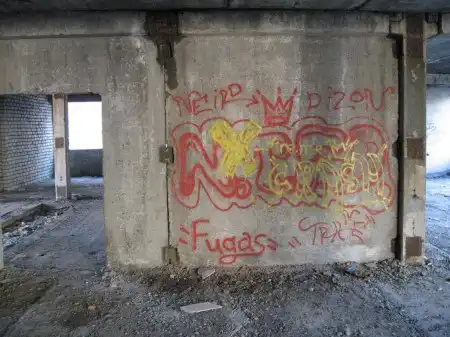 Вау!!Грязь! Сломанные стены!Художественные рисунки на них же! бетонные плиты!!Прям чудо света! Срочно нужно заносить в список чудес света=)))