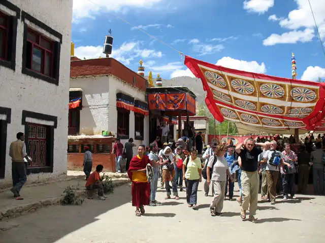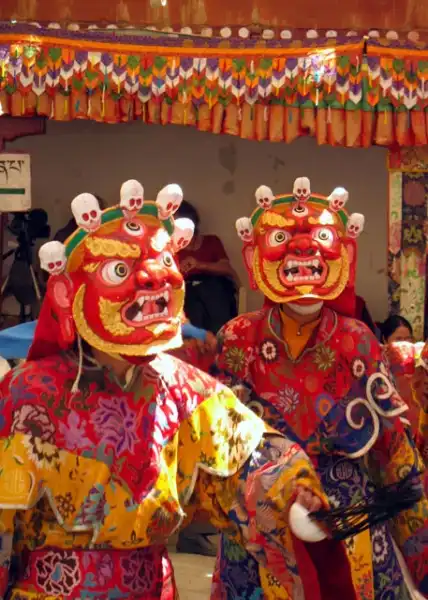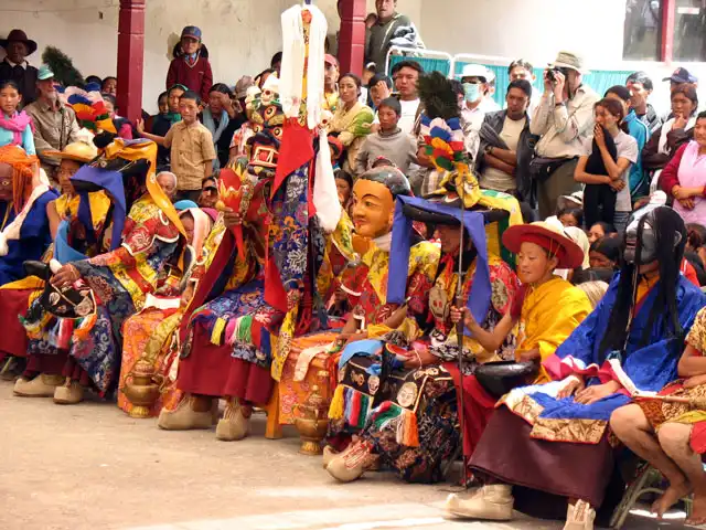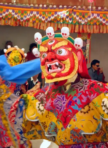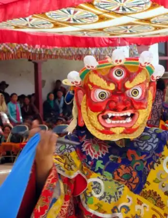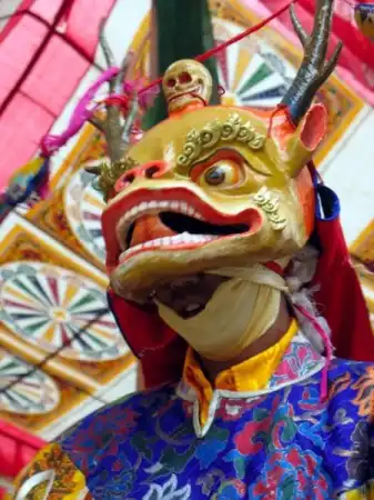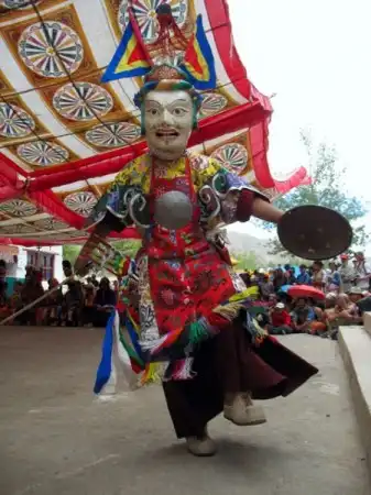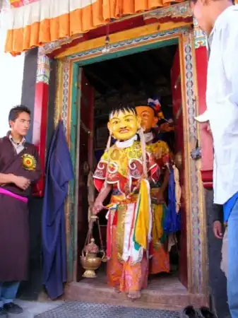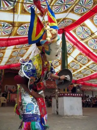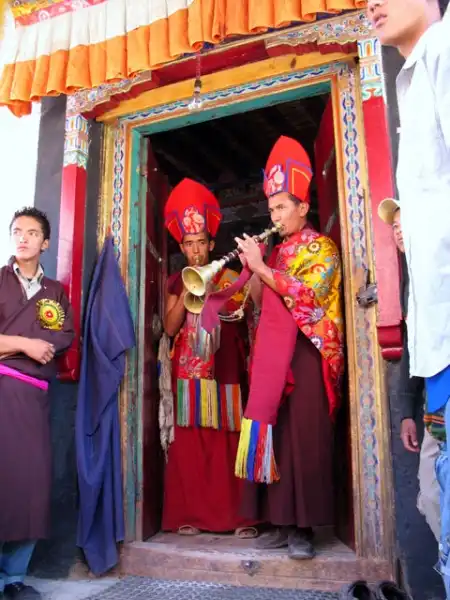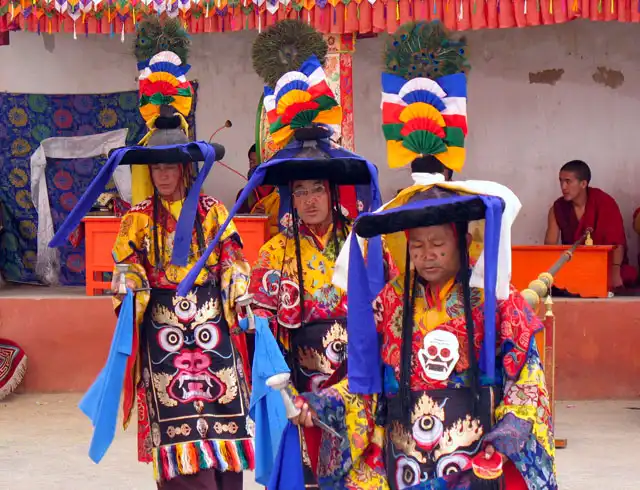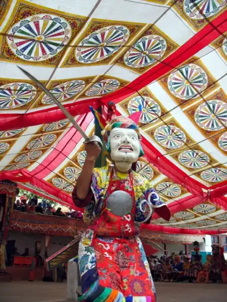 В июле в монастырях Ладакха проходят красочные зрелища – так называемые церемонии чам – религиозные действа с чтением мантр, храмовой буддийской музыкой (или вернее сказать – звуками, потому что для неискушенного европейского уха эти удары в барабаны и тарелки, эти трубы звучат как хаотичный набор звуков), а главное – с танцами в масках. Исполнители ролей святых, богов и демонов – сами монахи, обряженные в красочные одежды и поражающие воображение маски. В каждом монастыре своя «программа» танцев, которые длятся порой весь день с девяти утра и до шести вечера. Какие-то представления – это живые картинки на тему «Тибетской книги мертвых», какие-то посвящены конкретным событиям. Так было и в монастыре Такток, где в те дни праздновали День рождения великого буддистского святого и yчителя Падмасамбхавы. Монастырь Такток, как отмечает «Лонли Плэнет», - единственный в верхней части долины реки Инд монастырь, принадлежащий ордену Нигмапа, школе тантрического буддизма. Падмасамбхава, бывший великим практиком Тантры, считается патроном этого монастыря. Церемония чам (или как по-другому называют это действо - танец лам) в Тактоке была посвящена жизни и наставлениям Падмасамбхавы.