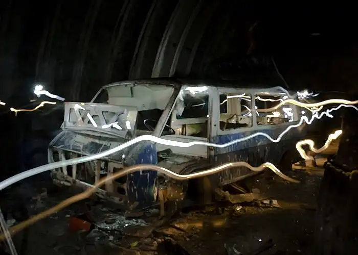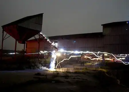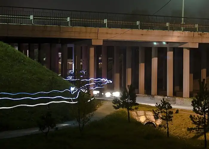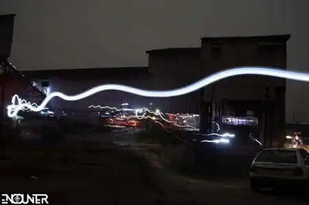 фотоаппарат на штативе, длинная выдержка от 10секунд и бегающий человек с фонариком как у зажигалки! След как более яркий в ночное время виден а человека нет. На первой и последней видны расплывчатые фрагменты ног :) [/u]