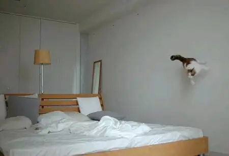 Моя кошка любит "бегать" по стенам))