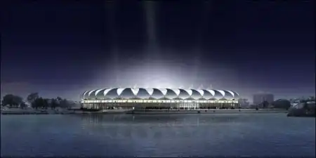 Новый стадион возводится на месте существующей арены «Гринпойнт». Его оболочка будет выполнена из стекловолокна, и внешне он будет напоминать облако.