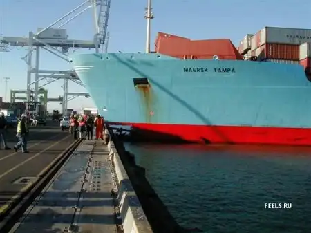 Чёт не спроста это - такие суда сами не швартуются - их буксирами к причалу подводять