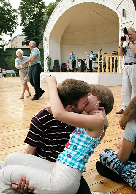 Это целуются гости Москвы, а местные даже время не подскажут.