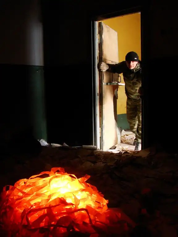 Постепенно живительная нега в пальцах иссякла, и он вдруг понял, что пора бы согреться и подкрепиться, ибо поиски предстоят значительные. Собрав обломки мебели, и фрагменты старых советских плакатов, искатель разжег небольшой костер. Билеты он жечь ре решался, ибо там, в огне мог сгинуть его единственный шанс на нормальную жизнь. Десять минут возле костра, и вот он уже забыл о бетонном заборе, о странном существе, и о морозе, который, казалось бы, исчез. Пожирая старое дерево, огонь рисовал на стенах и потолке обветшалой комнаты свою картину теней и ярких всполохов. Спокойствие и умиротворение поглотило Виталия, словно не существовало бы ничего, даже заветного билета, который он еще не нашел, но совсем скоро он на него наткнется. Хлеб с салом, захваченные с собой, и горький черный чай из фляги окончательно расслабили его.