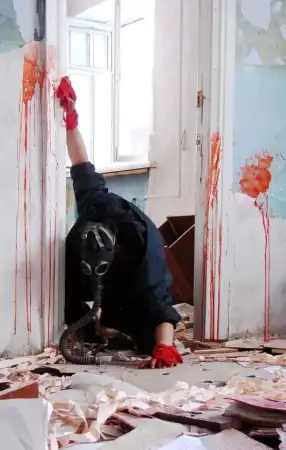 Вдруг в костре щелкнуло старое дерево, что-то пошевелилось вдали, и Виталий незамедлительно нажал на спуск. Короткая очередь огласила давно покинутый людьми второй этаж полуразрушенной постройки. Тень в конце коридора, издав неестественное шипение, метнулась куда-то в сторону. Сердце Виталия замерло. Недоеденный бутерброд, торчавший во рту стал, ему мешать, и искатель принялся ритмично двигать челюстями, пытаясь как можно скорее проглотить кусок. Однако все было зря, начав глотать, Виталий понял, что кусок был слишком велик, и вот-вот застрянет в горле. Секунда за секундой его настигла нехватка воздуха, постепенно, забыв и о сумрачной тени, и о билете и о своем оружии принялся пригибать голову к плечам, и пытаться проглотить упрямый кусок. Воздуха становилось все меньше и меньше. Искателя охватила паника. Он попробовал ударить себя по спине, потом повернулся, чтобы выбрать позу по удобнее, однако вновь могильный холод окатил его с головы до пят. В оконном проёме комнаты, в которой находился искатель кто-то стоял.