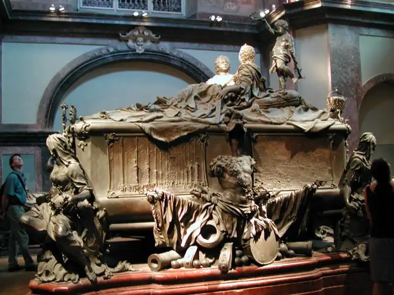 Первый склеп — королевская семья Орлеан, похоронены в Dreux (Франция), второй — австро-венгры, похоронены в Венгрии. Надгробная надпись королей австро-венгрии: Я есмь император Австрийский, именем папы утвержденный король Венгерский, правитель Богемии, Далмации, Хорватии, Славонии, Галиции, Лодомерии и Илирии, царь Иерусалимский, эрцгерцог Австрийский, великий герцог Тосканский и Краковский, герцог Лотарингии, Зальцбурга, Стирии, Коринфии, Карниолы и Буковины, великий князь Трансильванский, правитель Моравии, герцог Верхней Силезии,Нижней Силезии, Модены, Пармы, Пласенции, Гуастальи, Аушвица, Затора, граф Габсбургский и Триольский, Кибургский, Горицкий и Градизский, великий князь Тренто и Бриксена, правитель Вышней Люзации и Нижней Люзации, и Истрии, граф Хонехембса, Фельдкирха, Бриганса, Зонненберга, правитель Триеста, Каттаро и Ла Марки, великий воевода Совета воевод Сербии…