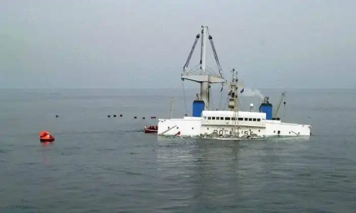 На 10-м свеху фото только верхняя палуба торчит да мачты, а все люди рядом в надувной лодке тусуются - п*здец кораблику пришел
