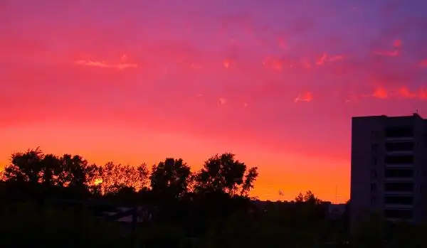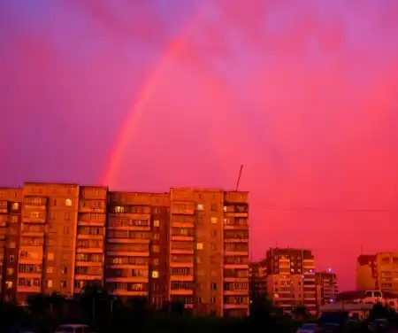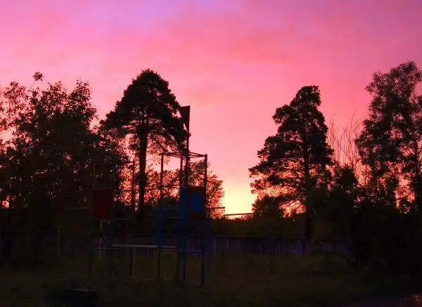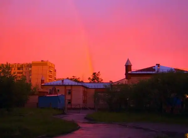 помню мы с подругой прям после урагана шли домой от учебной до 1905 чеерз деревья скакали, через лужи, и вот видим вот это краснющее сияние..и думаем все, блин, конец света =))