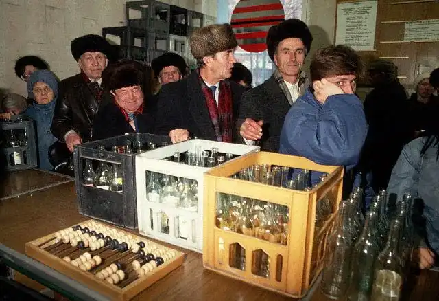 Барыги, спекулянты, рэкит, раздолбанные автоматы с газировкой, очереди в киллометр)))