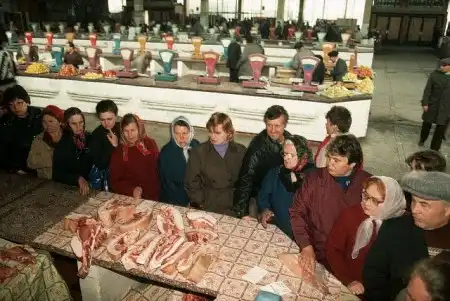 Пустые прилавки, газировочка 1коп - без сиропа, 2коп - с сиропом, 2 вида колбасы на всю страну, одинаковая, как у клонов, одежда и очереди...............СэСэСэРэ