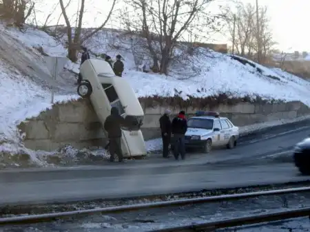 Ну это авто-фото дня однозначно. Надеюсь, что никто не пострадал.А на следующих фотографиях челябинские ребята решили срезать путь.Получилось не очень красиво )