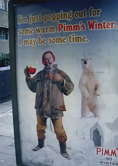 Некий народный умелец распечатывает фрагменты рекламных постеров, на которых герои этих самых постеров оказываются обезглавленными.