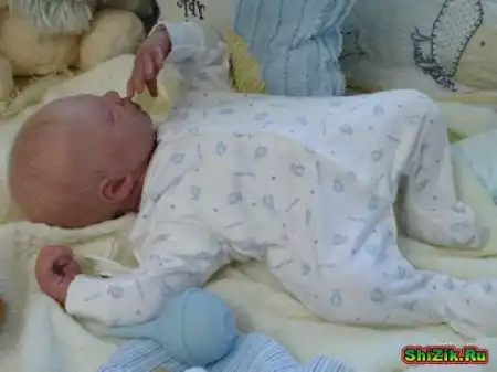 А вообще посмотрите например на пальцы одного и того же "ребенка". Их положение одинаково до миллиметра во всех случаях. (фото 4-6, 7-8), и последнее фото - где вы видели спящего младенца с такими вытянутыми пальцами?
