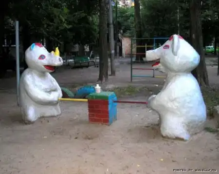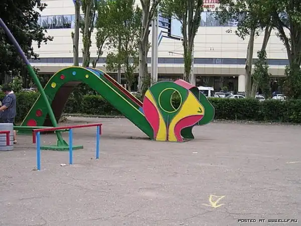 Последнее просто ужас... А вобще я видел в одном дворе скульптуру "гриб" который более походит на член, но судя по всему этот фалический символ детей не пугает, поскольку его красная шляпка пользуется большой популярностью у детей, они постоянно на нее лезут.