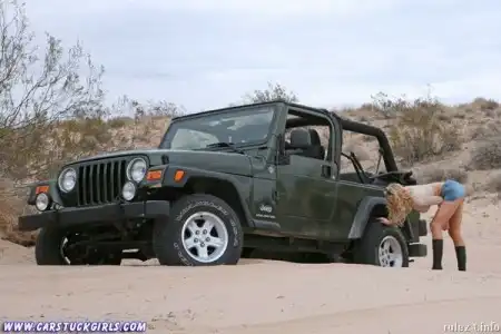 Конечно, как застрянешь, первым делом надо покопаться в песочке, воды себе на сиськи полить и в грязи вывозиться!
