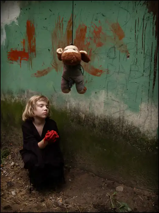 Дети - это счастье, мне не очень нравится, когда их ассоциируют с чем-то темным и кровавым, хотя надо признать, что фотографии очень хорошие!