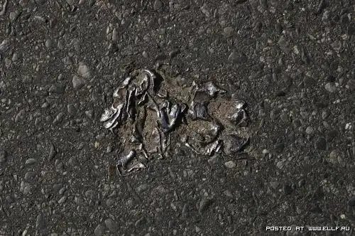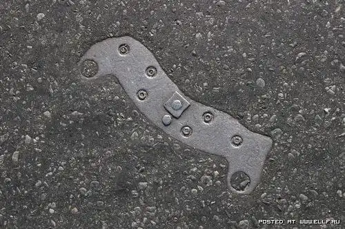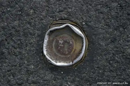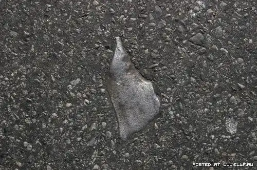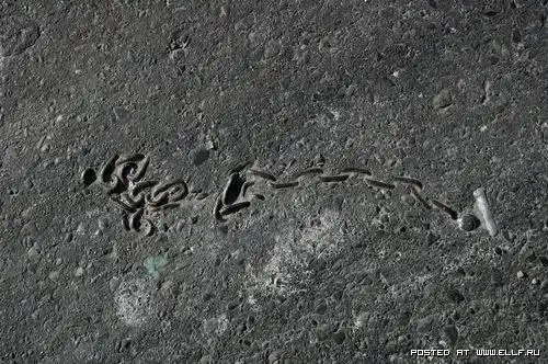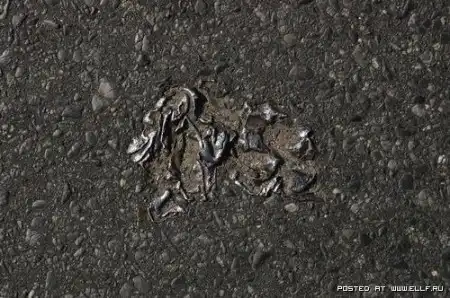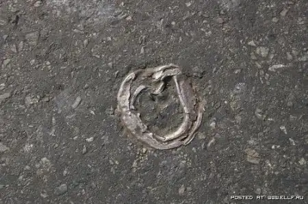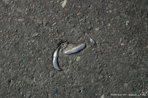 Это не втоптано, и не заезжено автомобилями в жаркую погоду. Это делается очень просто: кидается под каток какая-нить фигня ненужная или случайно падает, а потом кто-то начинает в этом искать какой-то смысл и придумываеть философские мысли типа "а мы и не замечаем что у нас под ногами" %)