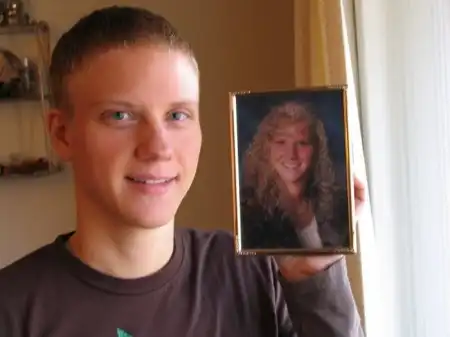 Он держит в руках фоторафию как он (она) выглядел (а) ранее... Как Вы уже догадались - он был девушкой.