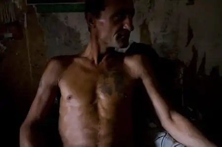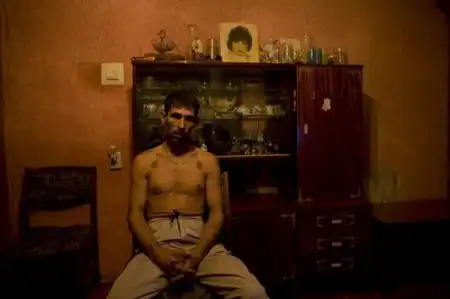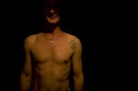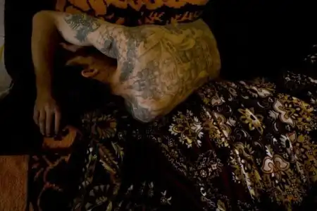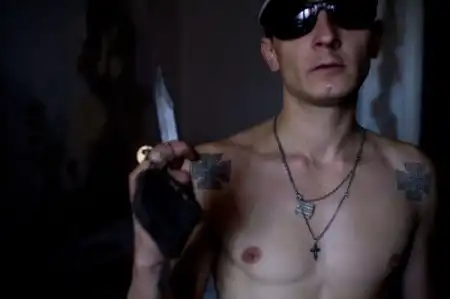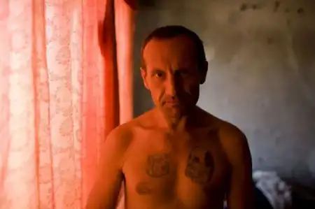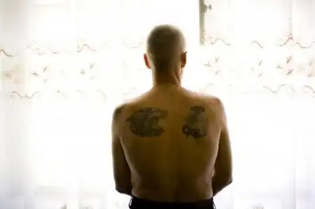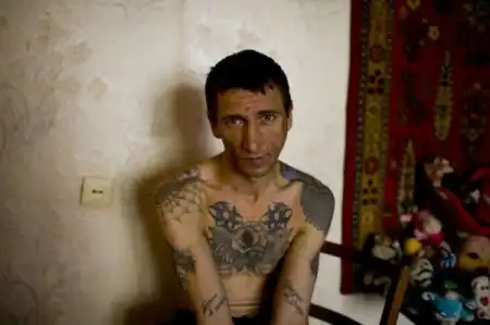 , прям весь с головы до ног в тату тюремных, почти всю жизнь в зоне провёл!!!