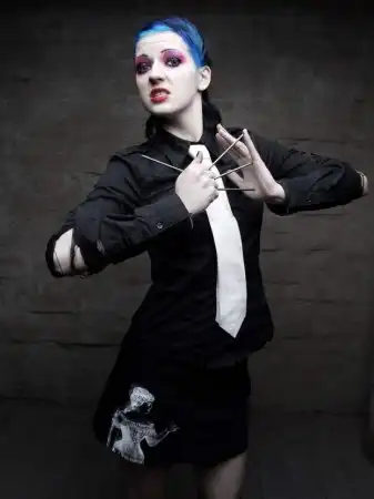 Интересно, это крашеный в голубой волосы или парик. Подруга все хочет покраситься в небесный.