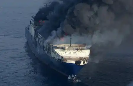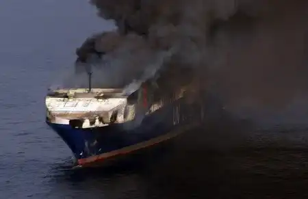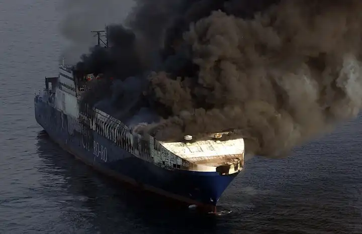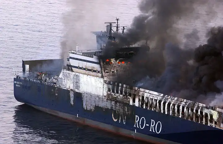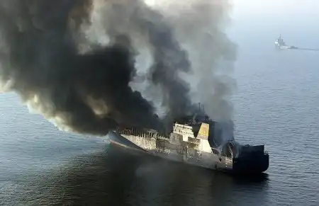 У берегов Хорватии горит грузовое судно UND Adriyatik с девятью тоннами какой-то опасной дряни, двумя сотнями грузовиков и сотней тонн горючего на борту. 22 члена экипажа и 9 пассажиров были эвакуированы греческим судном Ikarus Palace и сейчас находятся на пути в Венецию.