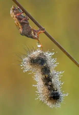 Насекомые в росе просто офигительно красивы... прям как украшения смотрятся ))инкрустированные тысячами страз))) здорово, ну а Гусеница пятнистая вообще самая позитивная!