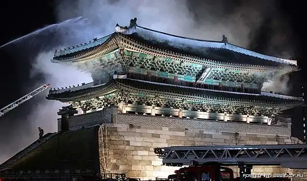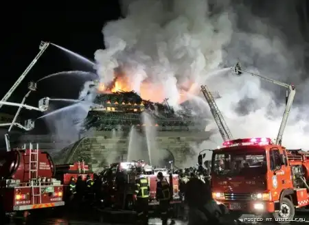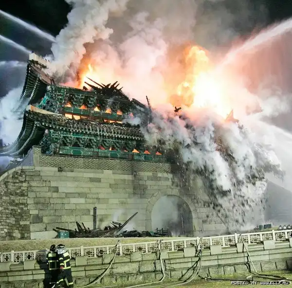 Ночью в Сеуле заполыхали знаменитые ворота рынка Намдэмун (14 век) – главной исторической достопримечательности страны. Это так же, примерно, как, если бы, в Москве сгорел храм Василия Блаженного на Красной площади.