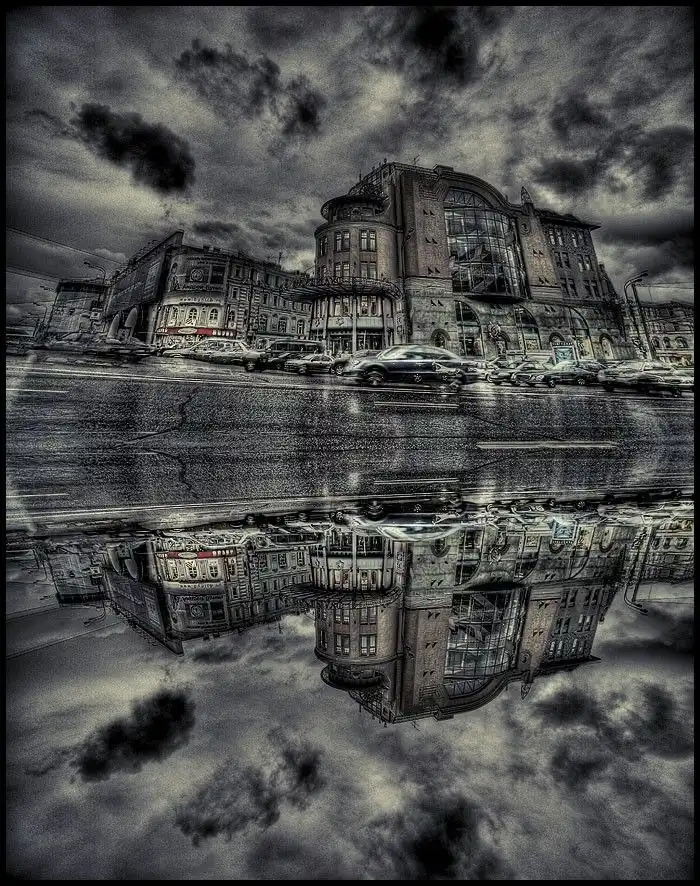 Хорош мегополис:машины плавают,мужик без головы сидит,цветок растет посреди асфальта,памятник расселся как царь,девка по дороге лежит))))