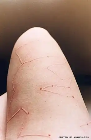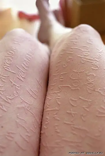 Ariana Page. Ее кожа – сверхчувствительна. Стоит лишь немного почесать и след не сойдет еще десятки минут. В силу этого обстоятельства, Ариана использует свое тело как полотно для эстетических и философских поисков. Она покрывает себя узорами, с виду напоминающими легкие эстетские ожоги.