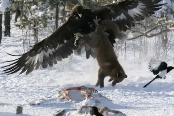 Умилилась крохотуле-фенеку, от души посмеялась над мышеловкой, попрыгуньей и вороной, да и зеваки улыбнули, даром, что это откровенная подделка. Ещё впечатлили пропорции орла (кажется, беркут) — до чего же он огромен по сравнению с сорокой!