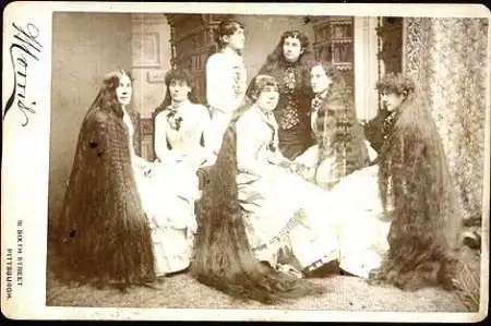 Длинные волосы, уложенные в элегантную прическу, были непременным атрибутом красавиц прекрасной эпохи. Но прославиться на весь мир своими локонами удалось лишь сестричкам Сазерленд, жившим в Локпорте (штат Нью-Йорк), общая длина волос всех семи красавиц составляла 37 футов (а это более 11 метров)!