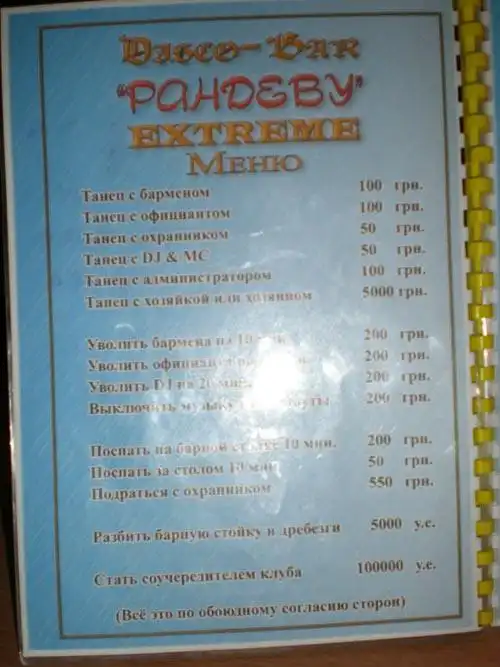 Прикольно. Особенно понравилось: Реклама Лада Приора и телефон эвакуатора, а также экстрим меню "подраться с охранником 550 ГРН...стать соучредителем клуба 100000 у.е."