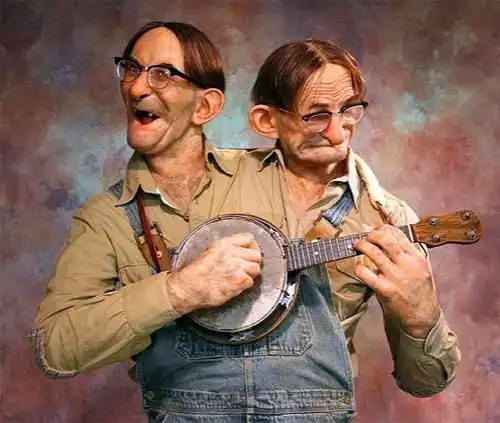 Сиамские близнецы - братья Грилей - Клетус и Шорти играют на банджо.