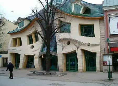 нет тут фотошопа, просто есть такой арх. стиль - деконструкивизм, вот хотя бы третий домик - "Джинджер и Фред" (танцоры) построен в Праге.