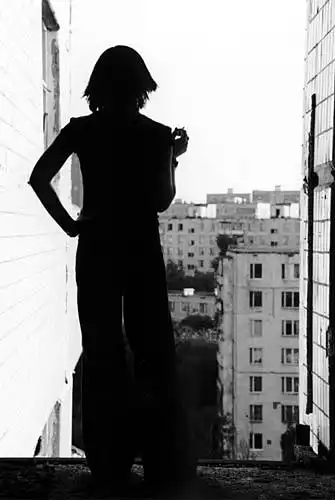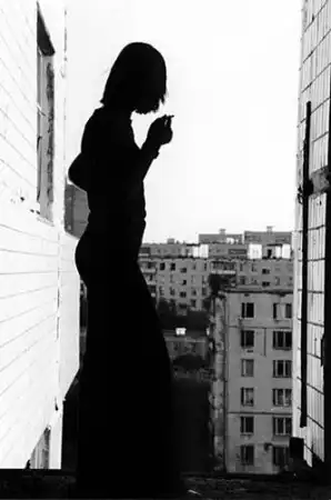 Я подумал, что может быть это Чернобыль, и фишка не в том, что женщина одинока, а целый город, вот стоит он такой печальный и одинокий в чернобелых тонах... За пост 5
