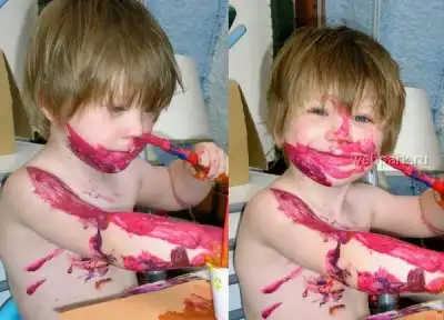 ты решила показать? молодец,а причем здесь остальные фото детей измазанных краской/грязью??название темы может относиться только к первой фотке, ибо дети всегда шалили))