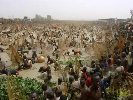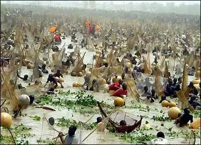 с таким большим количеством людей в воде , можно поймать не только рыбу, но и соседнего рыбака.
