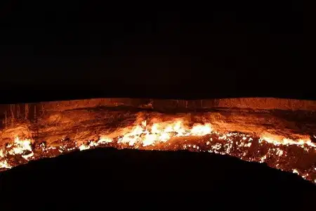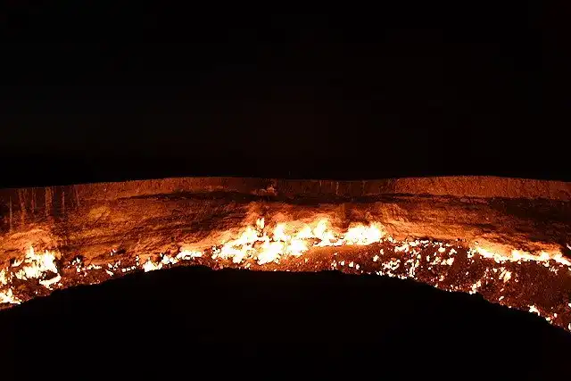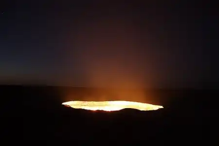 Кратеры с горящим газом в Дарваза, Туркменистане