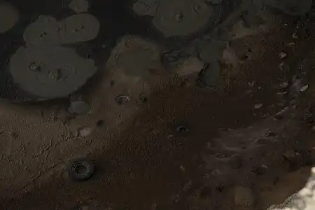 как я поняла там лава, а лава при недвижений и взаимодействии с воздухом застывает(у меня дома ложка из застывшей лавы лежит) ...поэтому либо лава двигается, что очень странно, так как она не выкипает, либо это бред сивой кобылы.