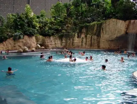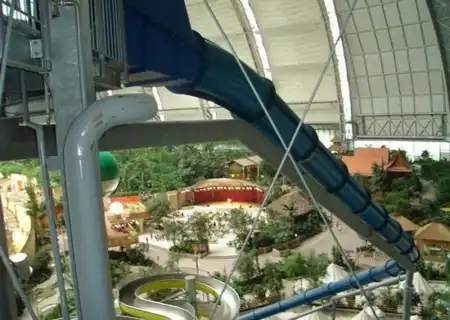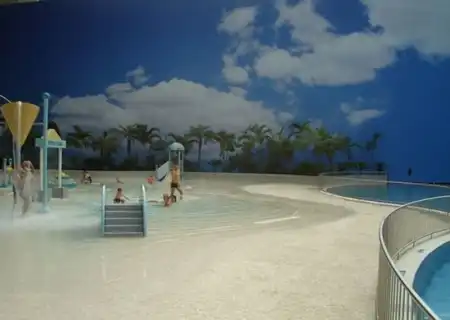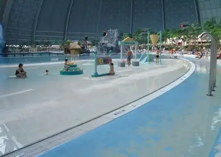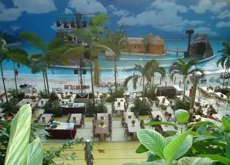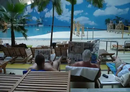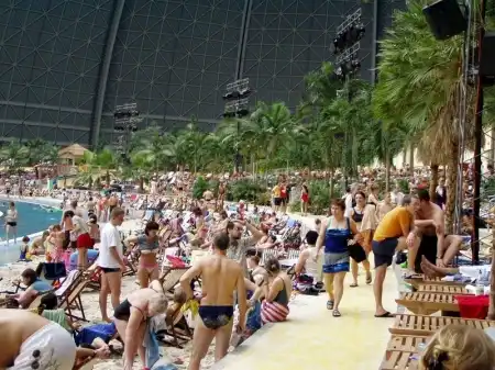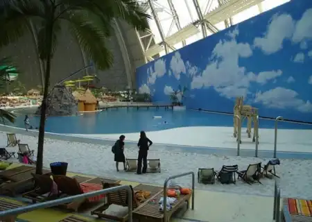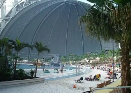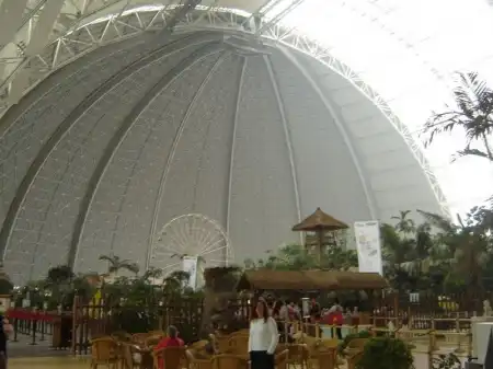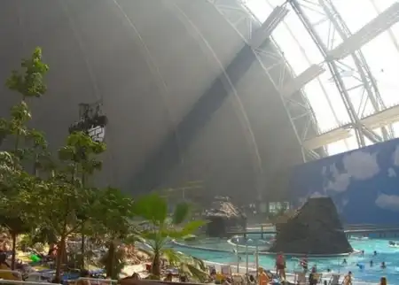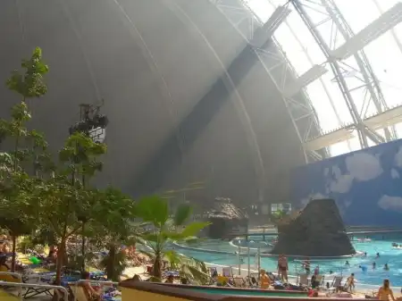 Под Берлином в 2004 году переделали ангар. И сотворили из него тропический рай. Мир со своей флорой и фауной под куполом. Имеет множество пляжей, а через прозрачный купол посетители могут принять солнечные ванны. Это имитация полноценного курорта.