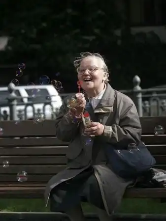 бабушка с мыльными пузырями прикольная,так и тянет на улыбку))))